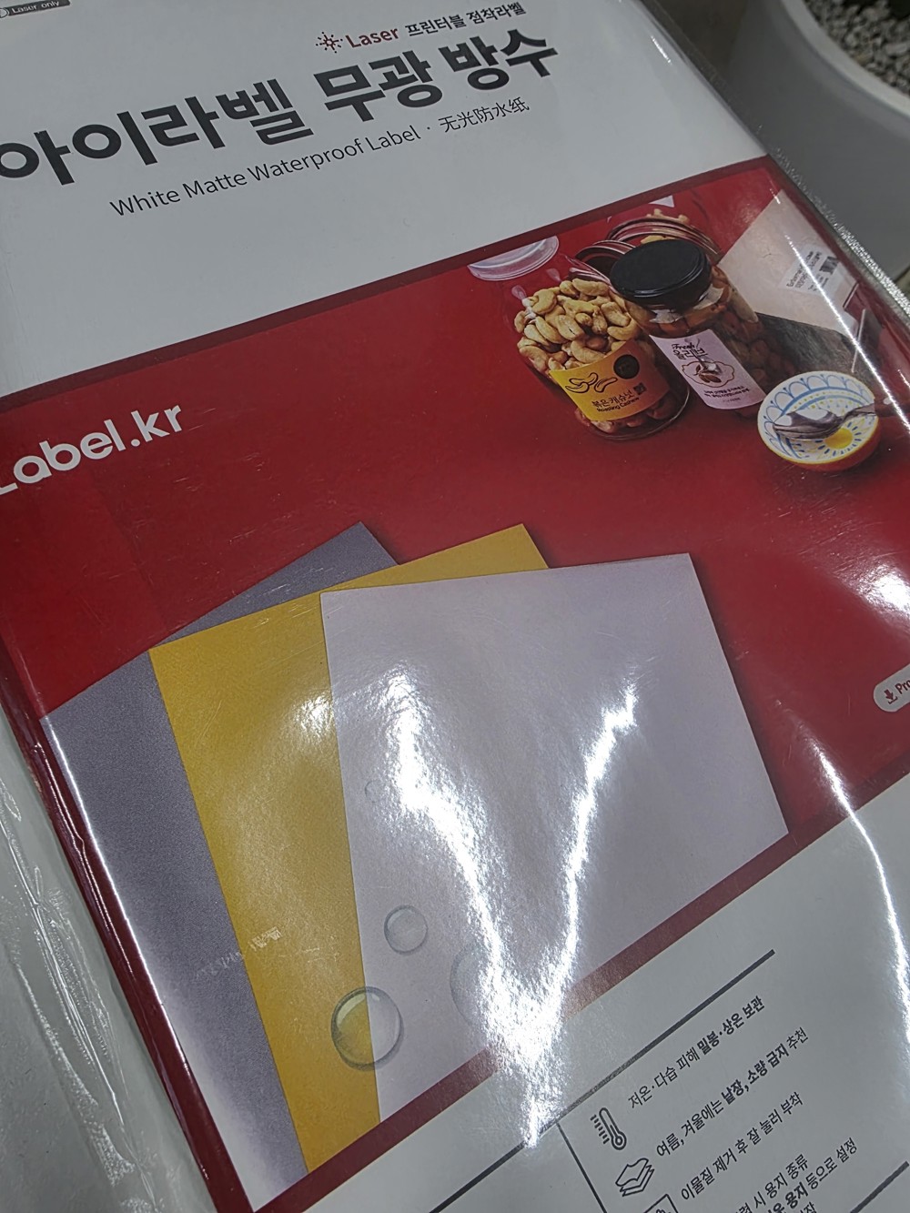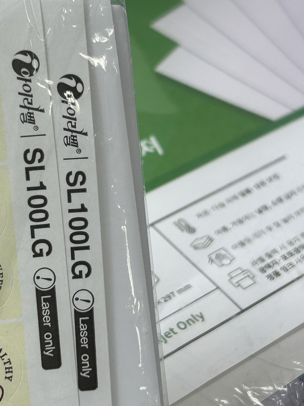 2. 반대로 레이저 프린터 전용 제품은 레이저 프린터에서만 출력 하셔야 합니다. 레이저 프린터 전용 제품을 잉크젯 프린터로 출력 할 경우는 오랜 시간이 지나도 잉크가 흡착되지 않고 표면에서 겉돕니다. 따라서 손으로 살짝만 만져도 잉크가 묻어 나옵니다.