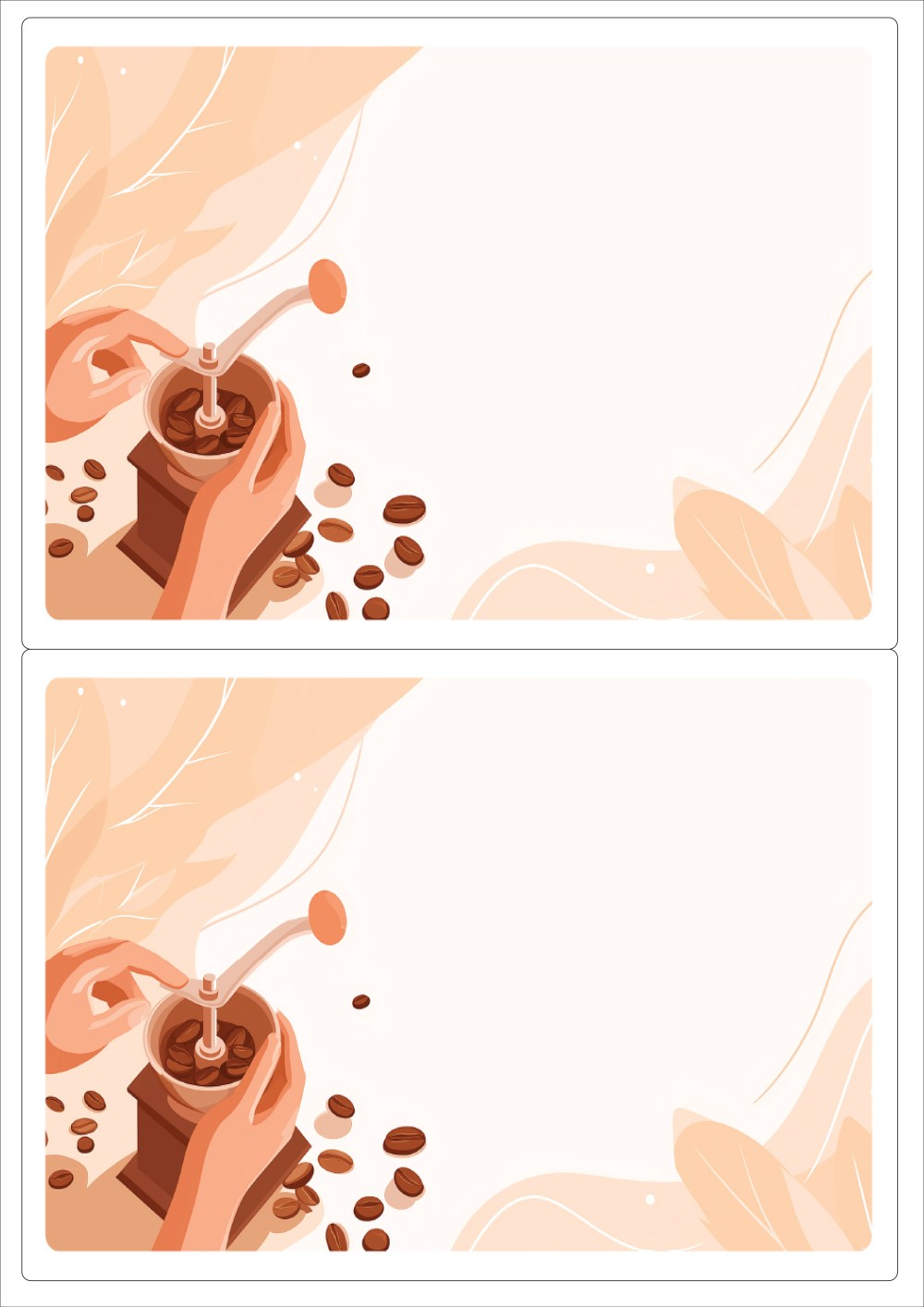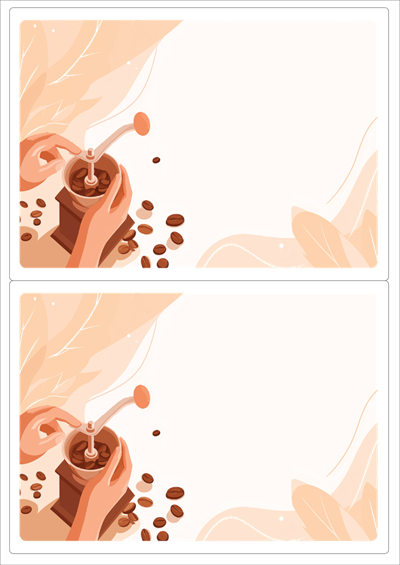디자인된 A4 라벨지 출력용 라벨스티커, 규격코드: 212, 디자인코드: DA1411(향긋한 커피타임), 199 x 143.5 (mm)
