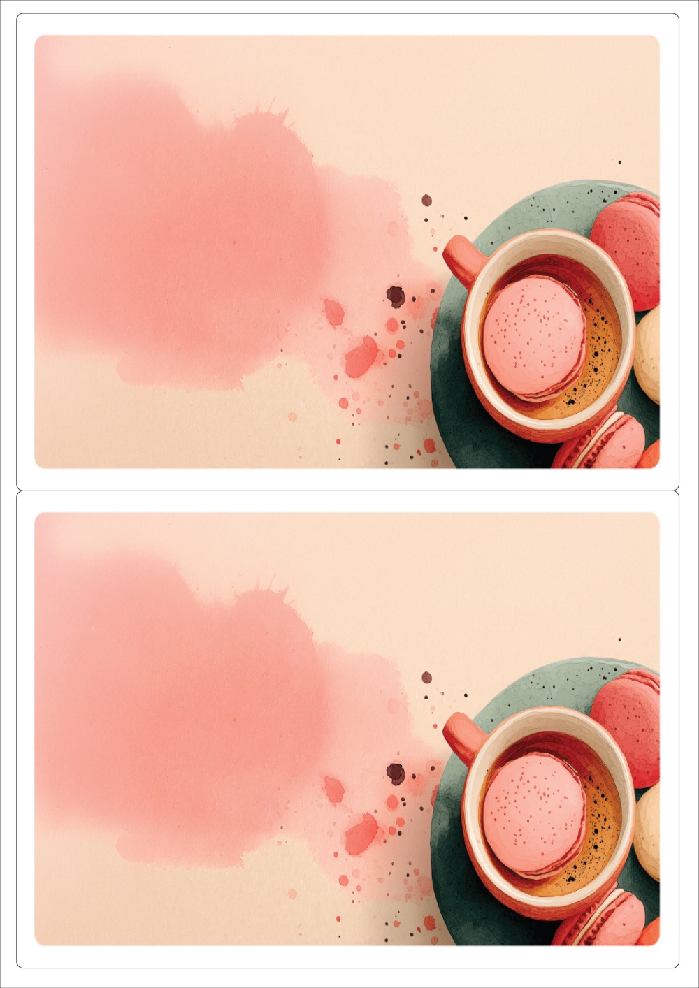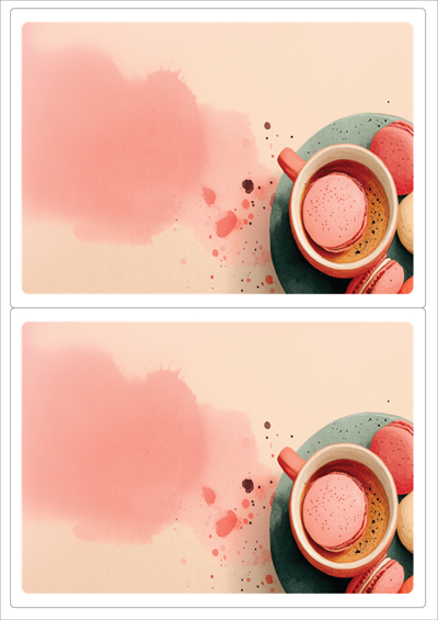 디자인된 A4 라벨지 출력용 라벨스티커, 규격코드: 212, 디자인코드: DA1444(마카롱 휴식타임), 199 x 143.5 (mm)