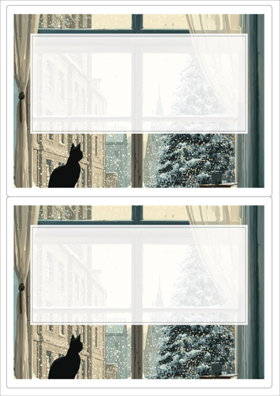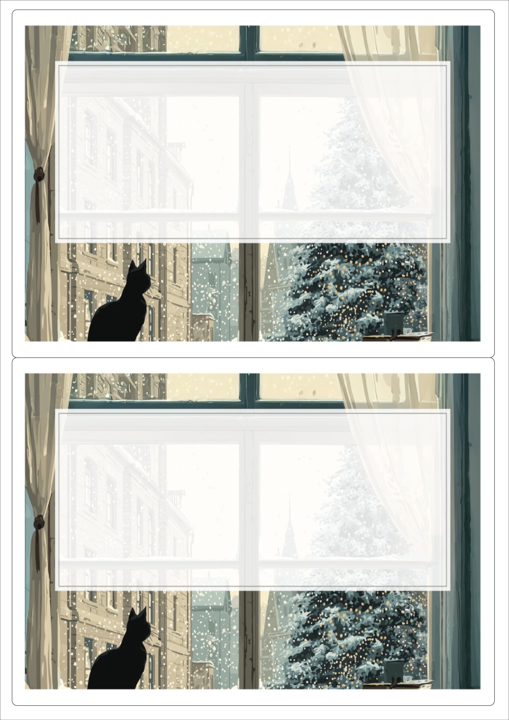 디자인된 A4 라벨지 출력용 라벨스티커, 규격코드: 212, 디자인코드: DA1494(오후엔 눈 그리고, 고양이), 199 x 143.5 (mm)