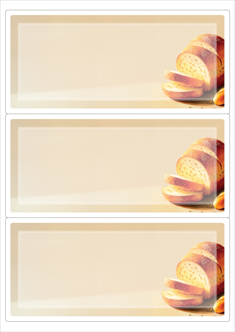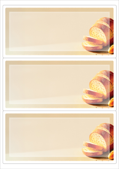 디자인된 A4 라벨지 출력용 라벨스티커, 규격코드: 213, 디자인코드: DA1450(맛있는 베이커리), 200.3 x 92.85 (mm)