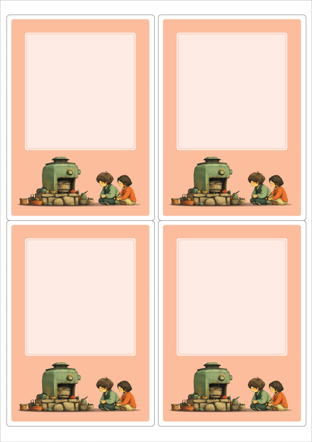 디자인된 A4 라벨지 출력용 라벨스티커, 규격코드: 222, 디자인코드: DA1438(동화 - 따뜻한 이야기), 99.5 x 138.2 (mm)