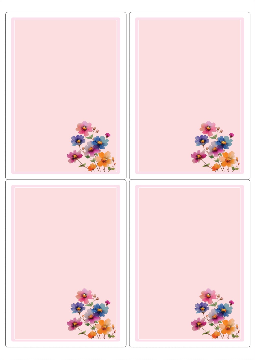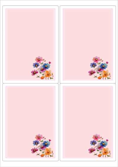 디자인된 A4 라벨지 출력용 라벨스티커, 규격코드: 222, 디자인코드: DA1451(꽃편지), 99.5 x 138.2 (mm)
