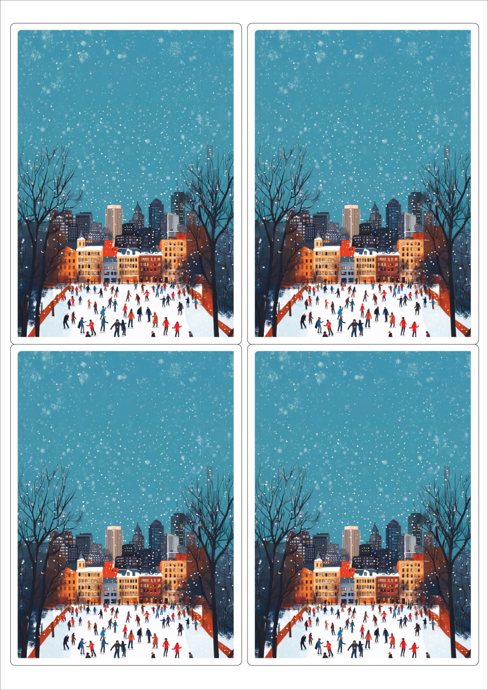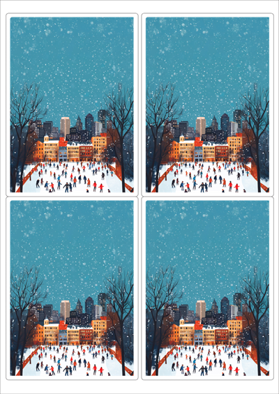 디자인된 A4 라벨지 출력용 라벨스티커, 규격코드: 222, 디자인코드: DA1471(겨울날의 즐거움), 99.5 x 138.2 (mm)
