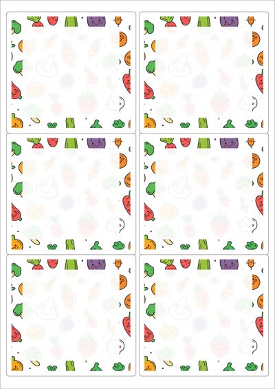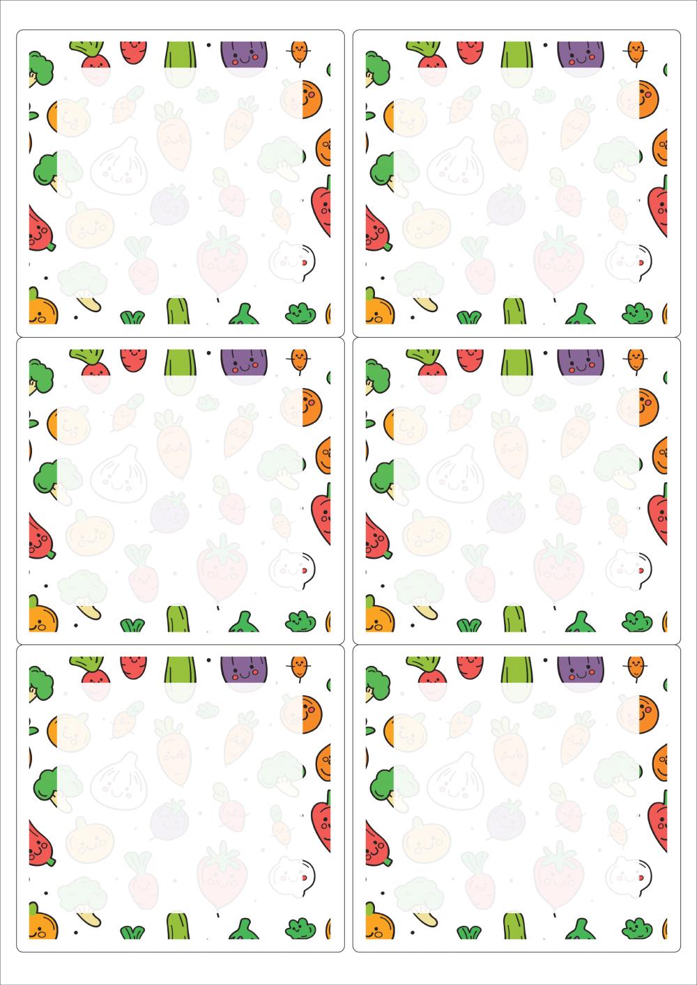 디자인된 A4 라벨지 출력용 라벨스티커, 규격코드: 223, 디자인코드: DA1376(건강한 야채 이야기), 98.8 x 92.7 (mm)
