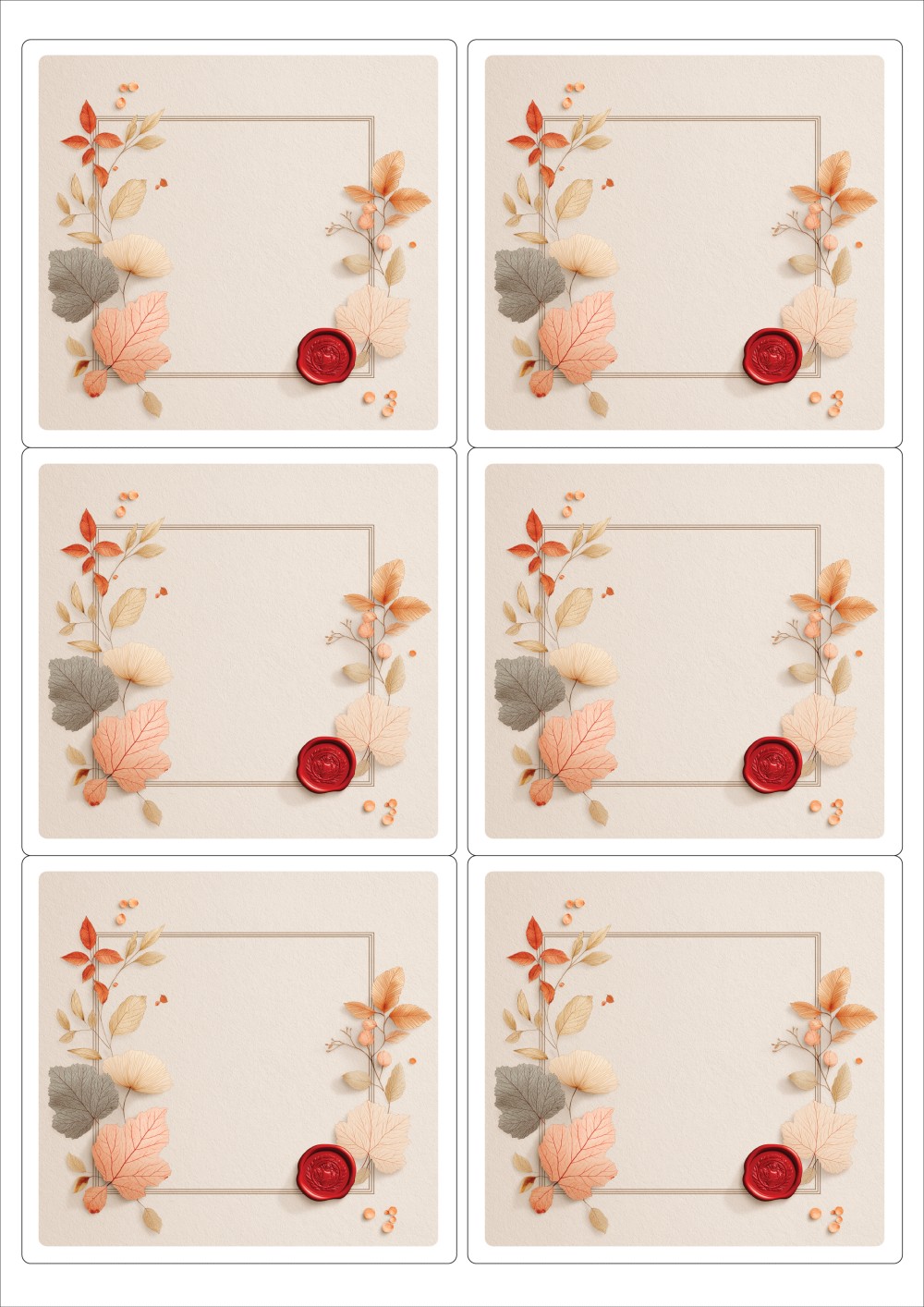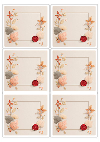 디자인된 A4 라벨지 출력용 라벨스티커, 규격코드: 223, 디자인코드: DA1429(가을날의 메세지2), 98.8 x 92.7 (mm)