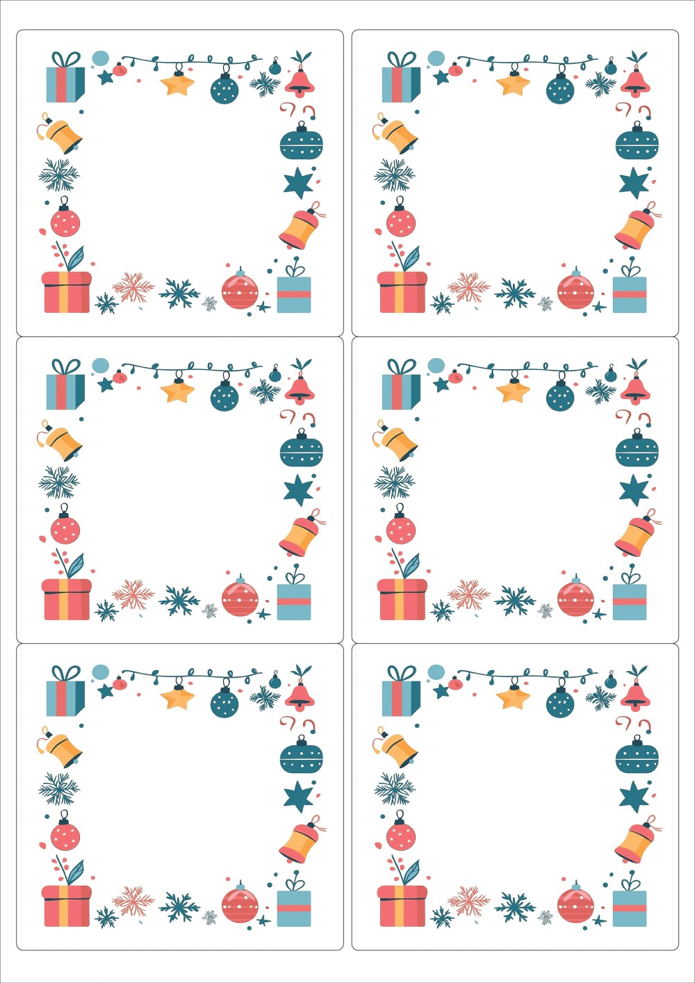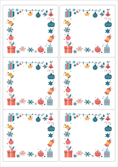 디자인된 A4 라벨지 출력용 라벨스티커, 규격코드: 223, 디자인코드: DA1458(크리스마스를 장식해요), 98.8 x 92.7 (mm)