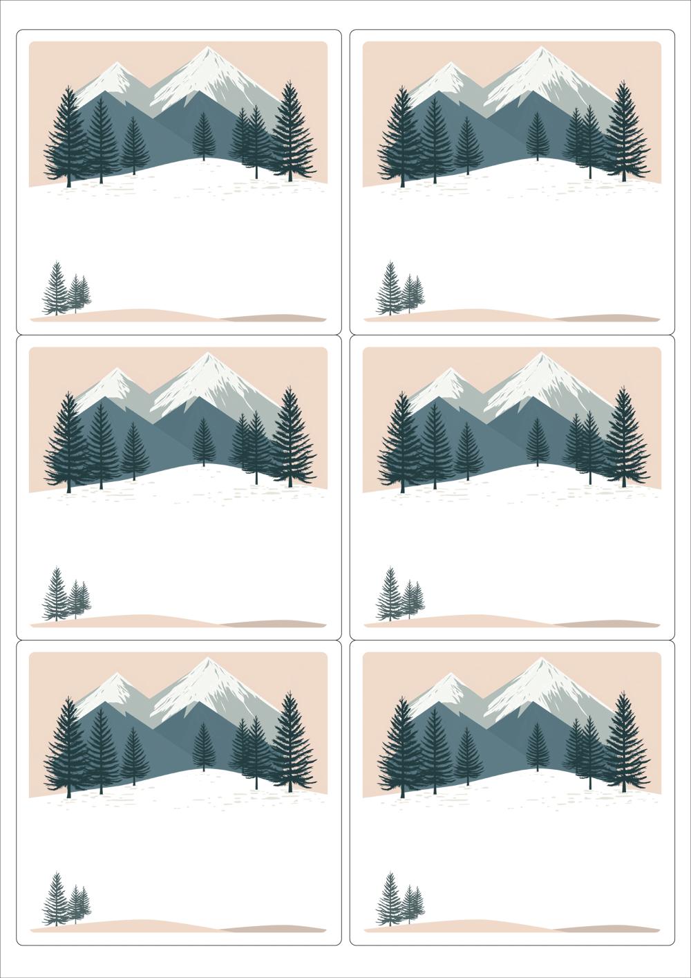 디자인된 A4 라벨지 출력용 라벨스티커, 규격코드: 223, 디자인코드: DA1582(저 잘지내요~ 겨울산에 인사), 98.8 x 92.7 (mm)