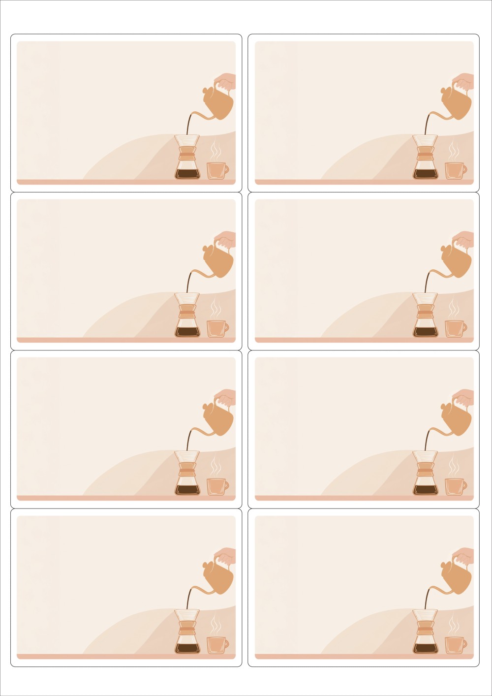 디자인된 A4 라벨지 출력용 라벨스티커, 규격코드: 224, 디자인코드: DA1413(커피와 함께 힐링타임), 99.1 x 67.5 (mm)