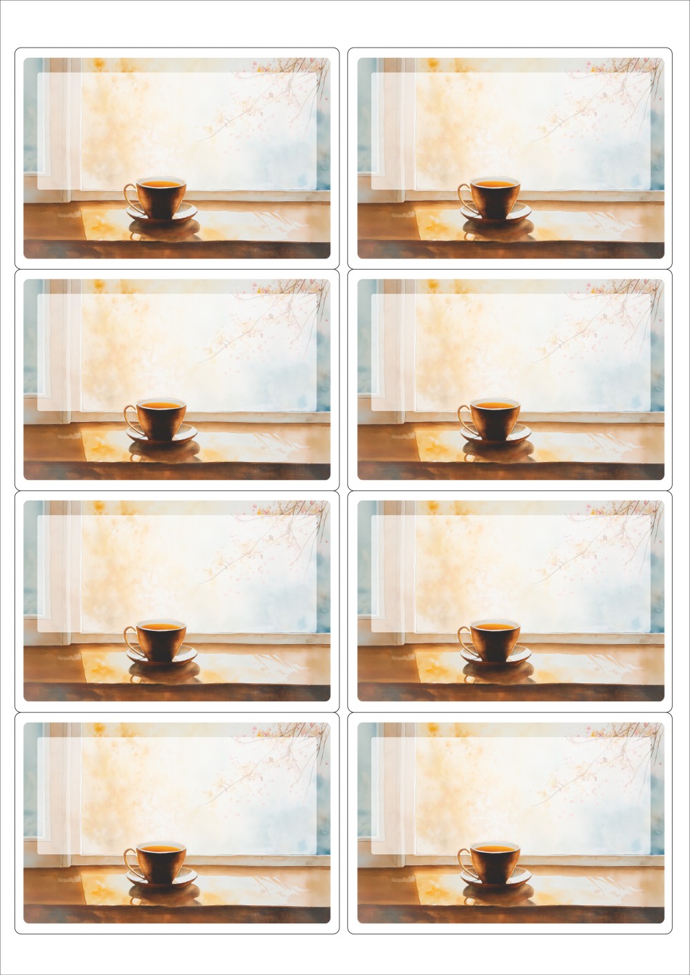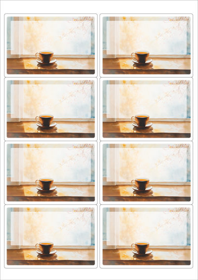 디자인된 A4 라벨지 출력용 라벨스티커, 규격코드: 224, 디자인코드: DA1425(가을날의 카페 창가에서), 99.1 x 67.5 (mm)