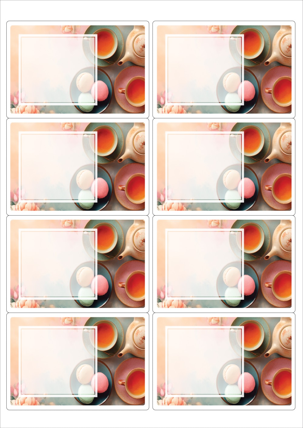 디자인된 A4 라벨지 출력용 라벨스티커, 규격코드: 224, 디자인코드: DA1431(향긋한 아침에), 99.1 x 67.5 (mm)