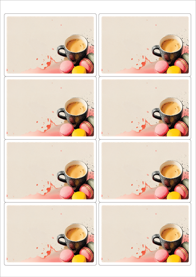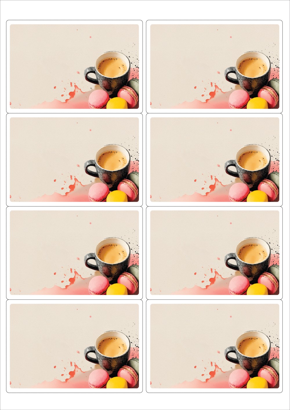디자인된 A4 라벨지 출력용 라벨스티커, 규격코드: 224, 디자인코드: DA1445(차와 함께하는 즐거운 힐링타임), 99.1 x 67.5 (mm)