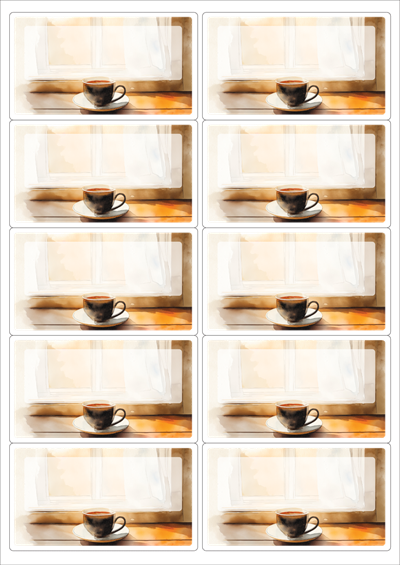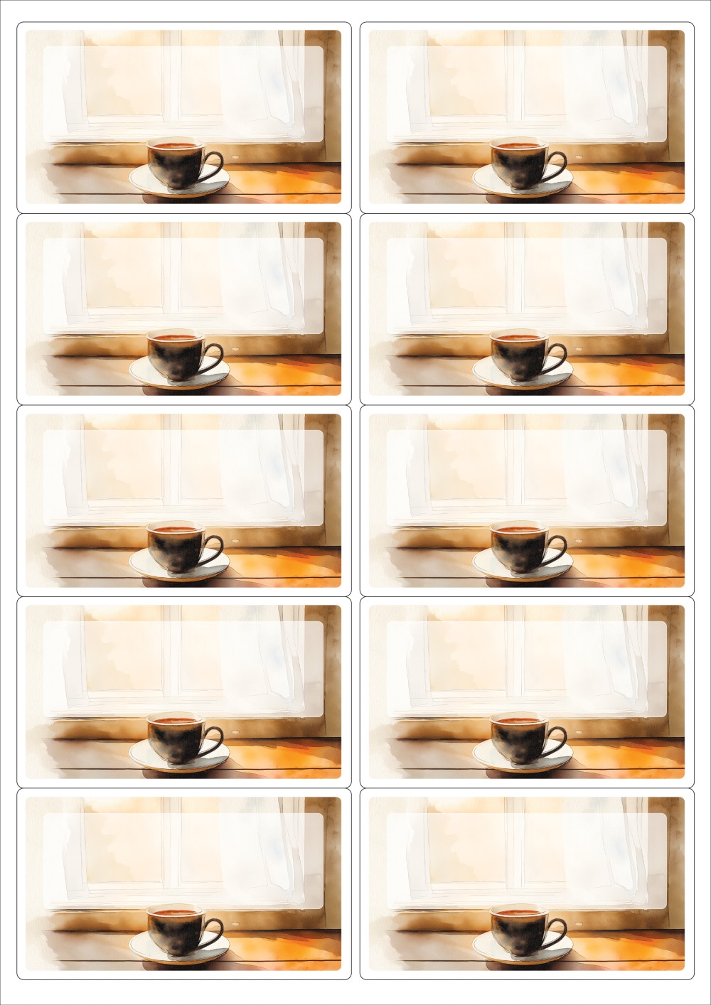 디자인된 A4 라벨지 출력용 라벨스티커, 규격코드: 225, 디자인코드: DA1424(따뜻한 차 한잔 하세요), 98.8 x 56.6 (mm)