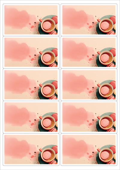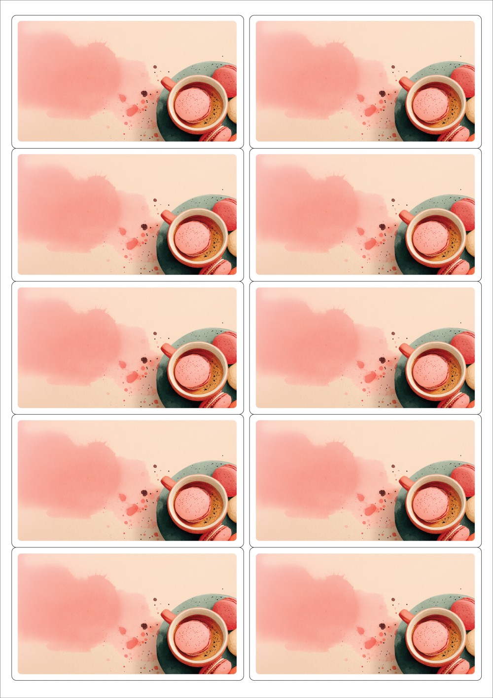 디자인된 A4 라벨지 출력용 라벨스티커, 규격코드: 225, 디자인코드: DA1444(마카롱 휴식타임), 98.8 x 56.6 (mm)