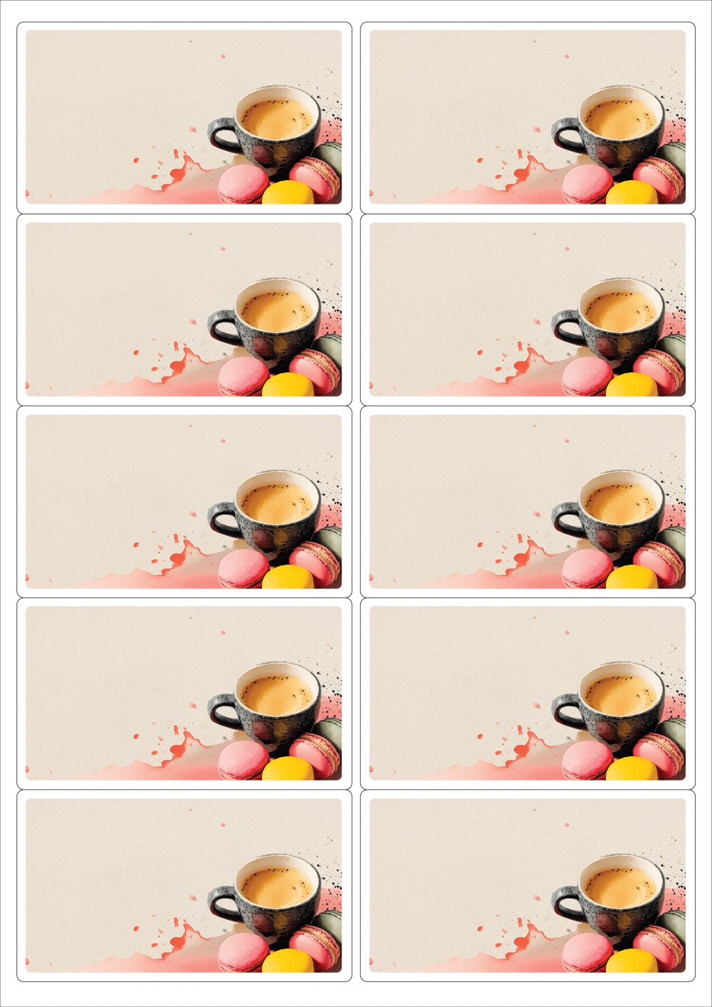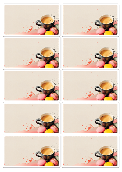 디자인된 A4 라벨지 출력용 라벨스티커, 규격코드: 225, 디자인코드: DA1445(차와 함께하는 즐거운 힐링타임), 98.8 x 56.6 (mm)