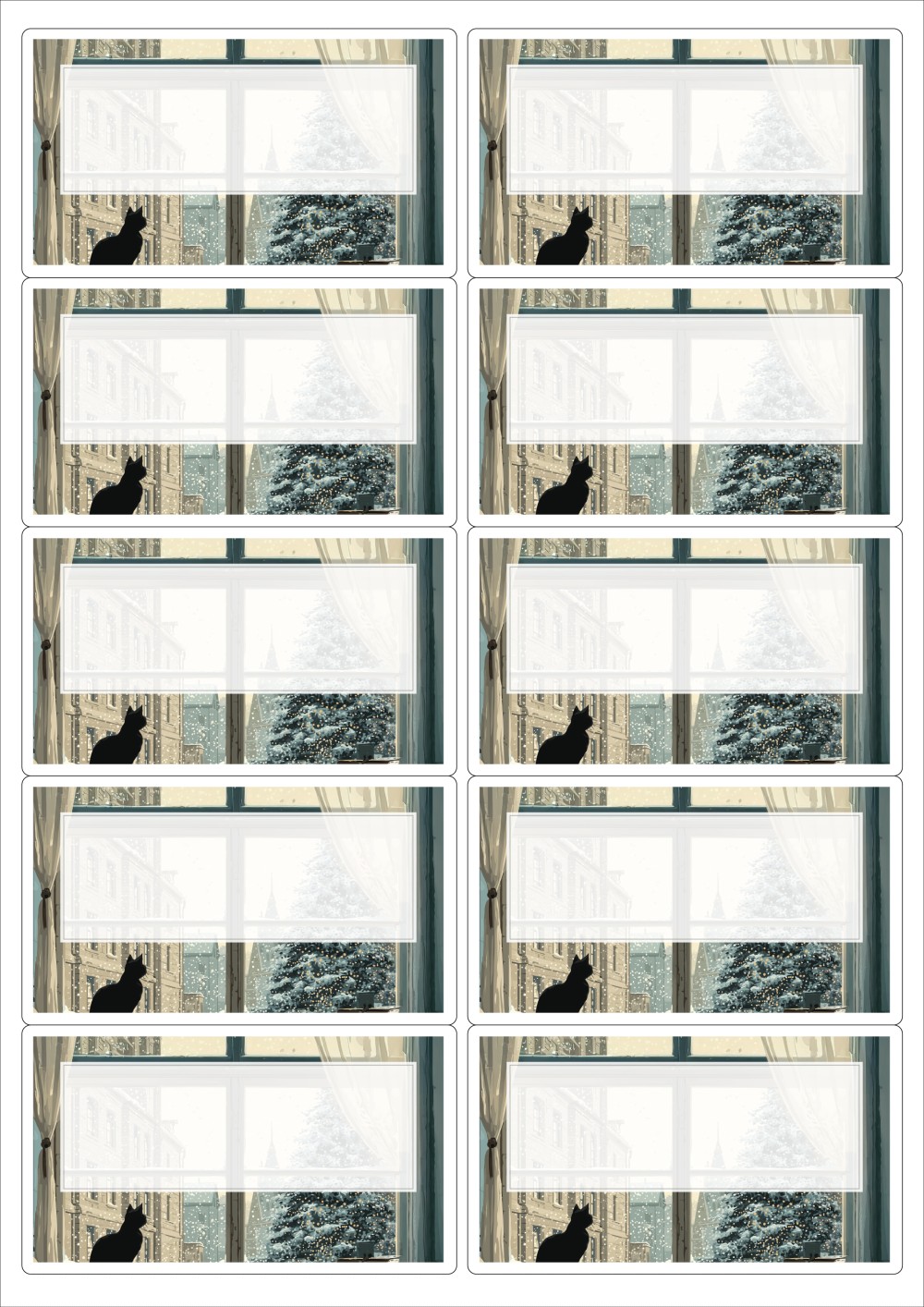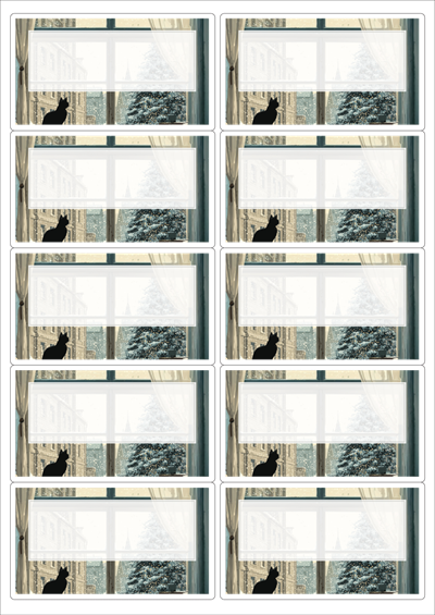 디자인된 A4 라벨지 출력용 라벨스티커, 규격코드: 225, 디자인코드: DA1494(오후엔 눈 그리고, 고양이), 98.8 x 56.6 (mm)