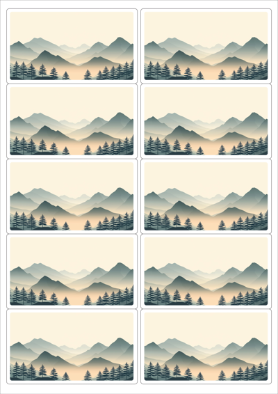 디자인된 A4 라벨지 출력용 라벨스티커, 규격코드: 225, 디자인코드: DA1572(고요한 아침의 숲), 98.8 x 56.6 (mm)