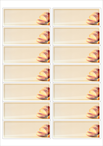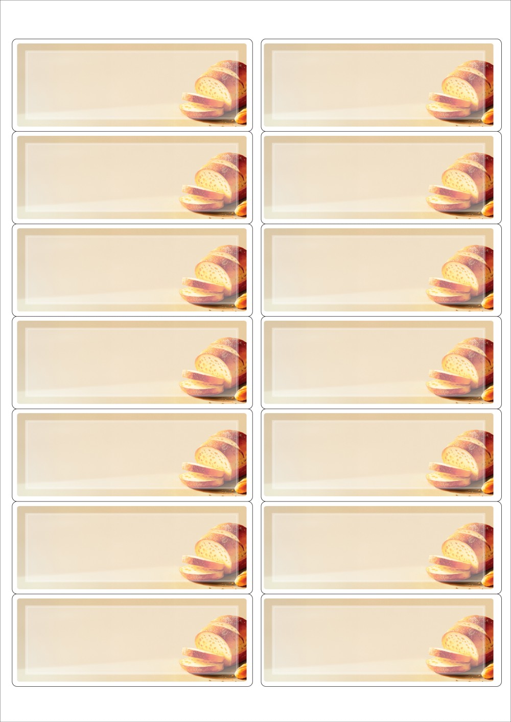 디자인된 A4 라벨지 출력용 라벨스티커, 규격코드: 227, 디자인코드: DA1450(맛있는 베이커리), 98.8 x 38.05 (mm)
