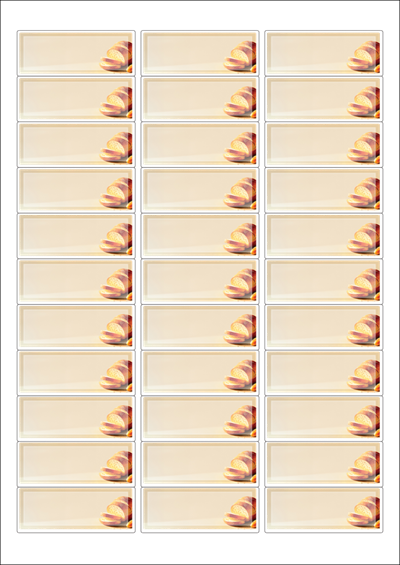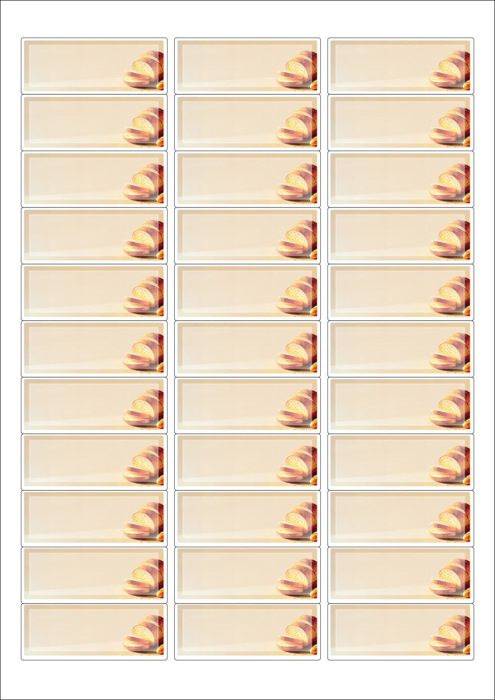 디자인된 A4 라벨지 출력용 라벨스티커, 규격코드: 231, 디자인코드: DA1450(맛있는 베이커리), 62 x 23.95 (mm)