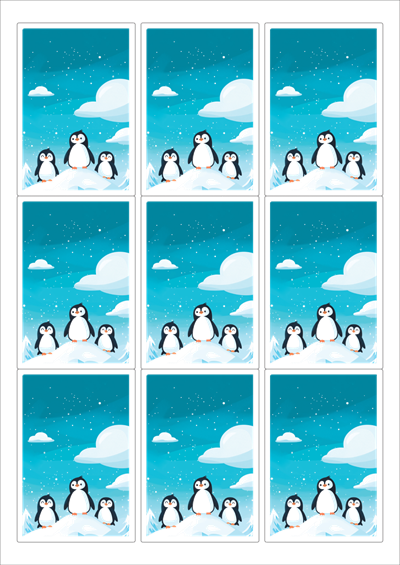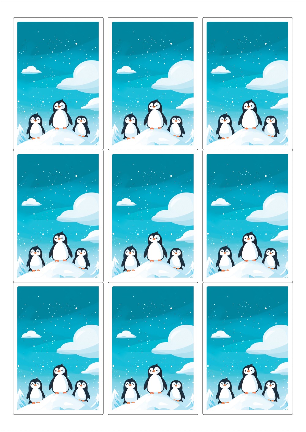 디자인된 A4 라벨지 출력용 라벨스티커, 규격코드: 233, 디자인코드: DA1468(반가워요. 귀여운 펭귄 친구들~), 62 x 91 (mm)