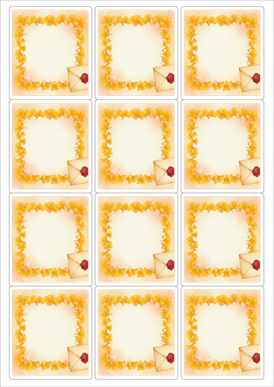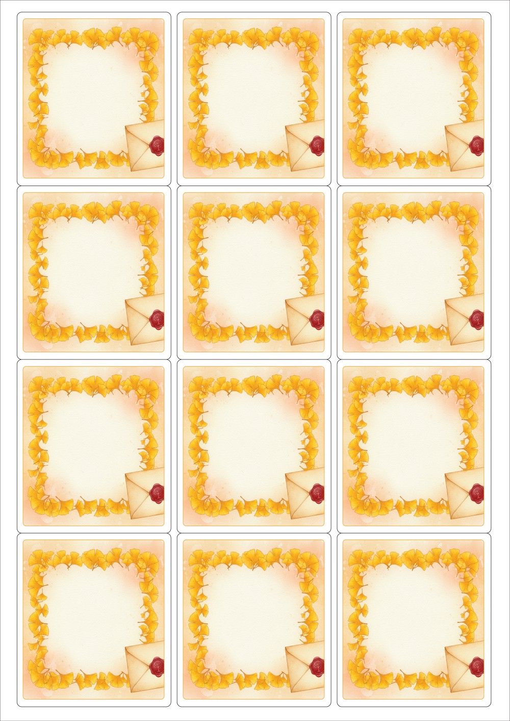 디자인된 A4 라벨지 출력용 라벨스티커, 규격코드: 234, 디자인코드: DA1426(은행잎 편지), 63.4 x 71.53 (mm)