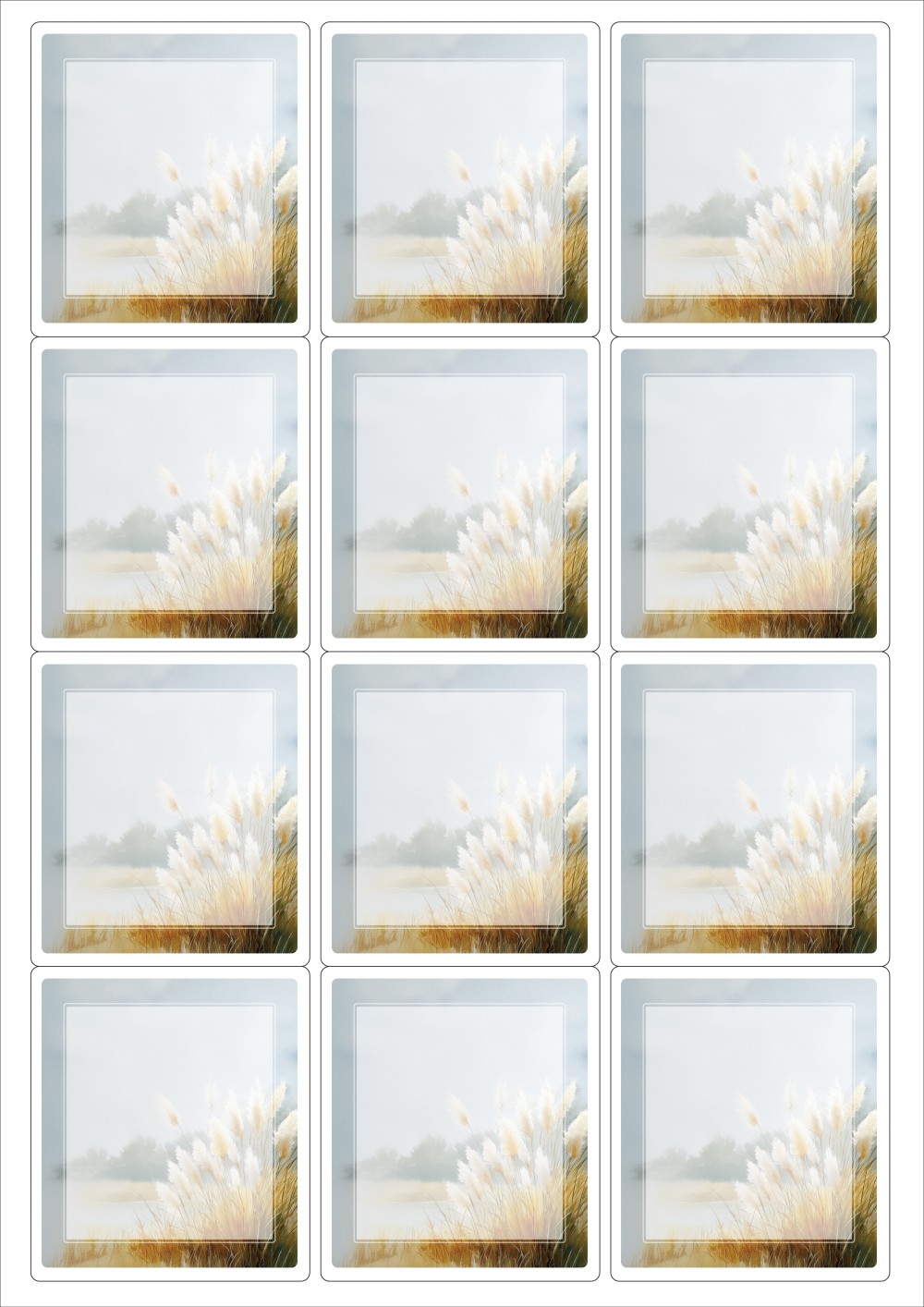 디자인된 A4 라벨지 출력용 라벨스티커, 규격코드: 234, 디자인코드: DA1449(가을 여행 2), 63.4 x 71.53 (mm)