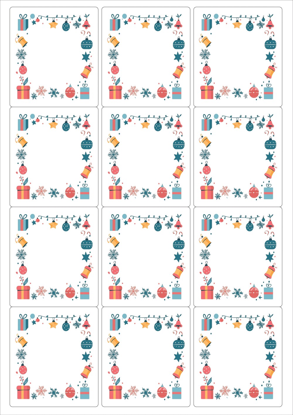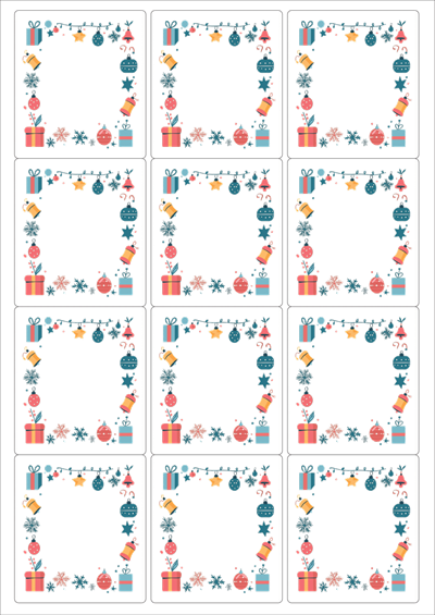 디자인된 A4 라벨지 출력용 라벨스티커, 규격코드: 234, 디자인코드: DA1458(크리스마스를 장식해요), 63.4 x 71.53 (mm)