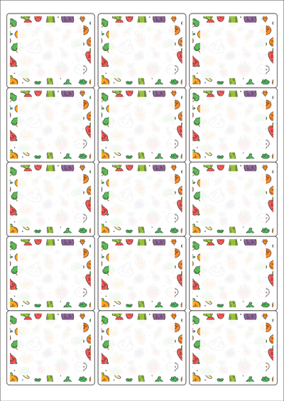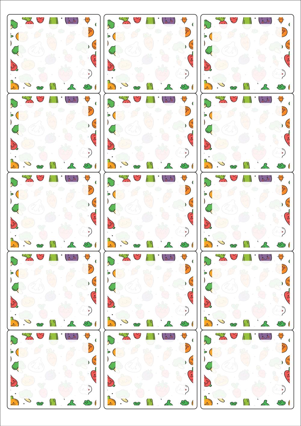 디자인된 A4 라벨지 출력용 라벨스티커, 규격코드: 235, 디자인코드: DA1376(건강한 야채 이야기), 65 x 55 (mm)