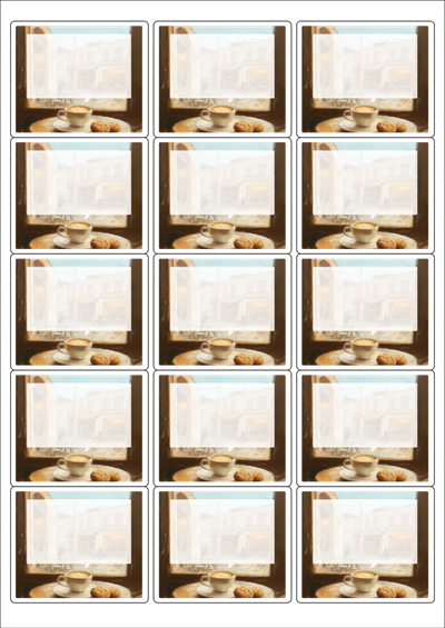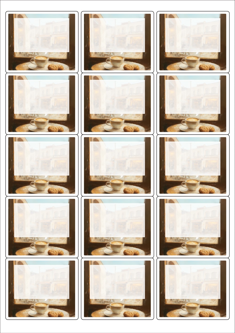 디자인된 A4 라벨지 출력용 라벨스티커, 규격코드: 235, 디자인코드: DA1479(레트로 감성 카페에서), 65 x 55 (mm)