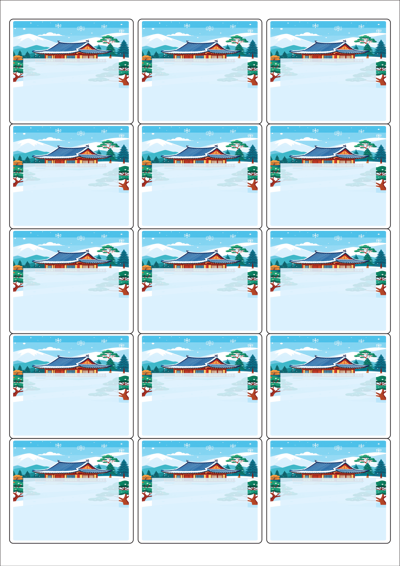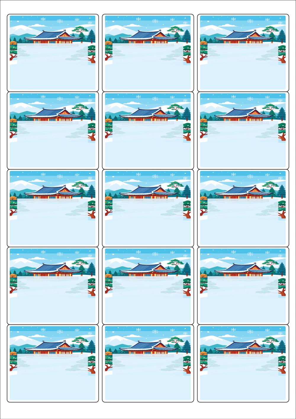 디자인된 A4 라벨지 출력용 라벨스티커, 규격코드: 235, 디자인코드: DA1567(설날의 아침1), 65 x 55 (mm)