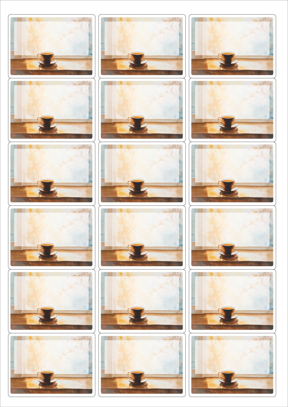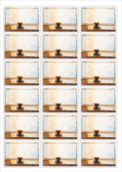 디자인된 A4 라벨지 출력용 라벨스티커, 규격코드: 236, 디자인코드: DA1425(가을날의 카페 창가에서), 63.4 x 46.51 (mm)