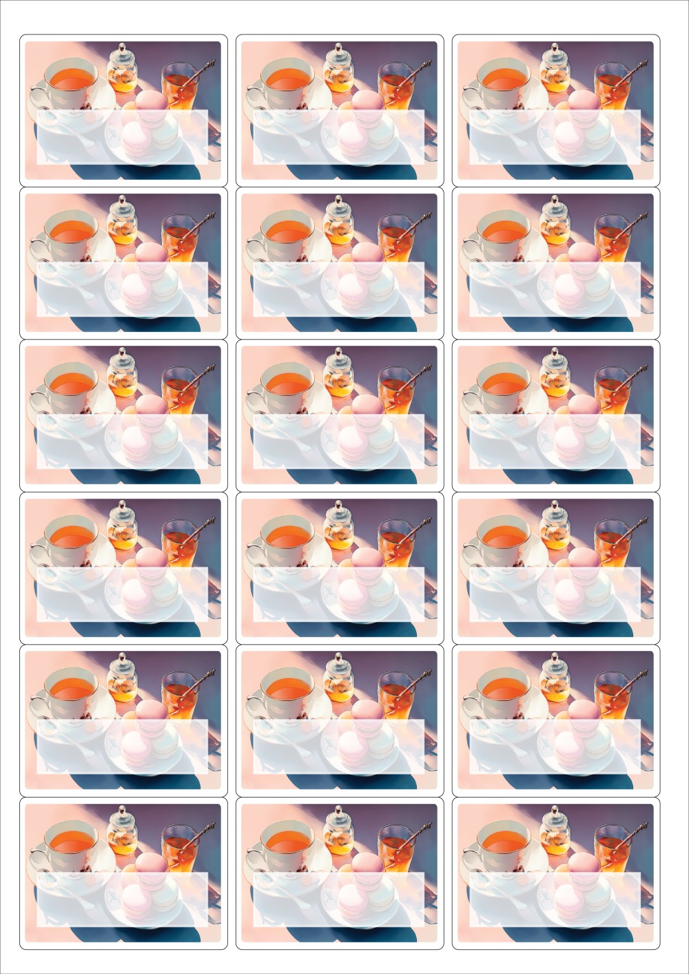 디자인된 A4 라벨지 출력용 라벨스티커, 규격코드: 236, 디자인코드: DA1430(브런치 타임), 63.4 x 46.51 (mm)