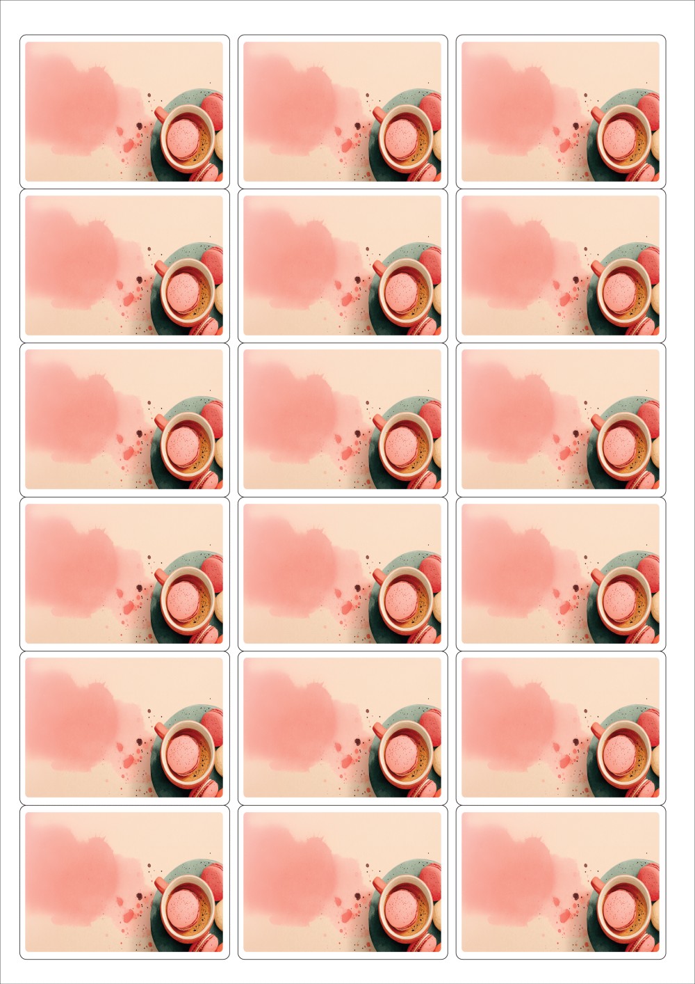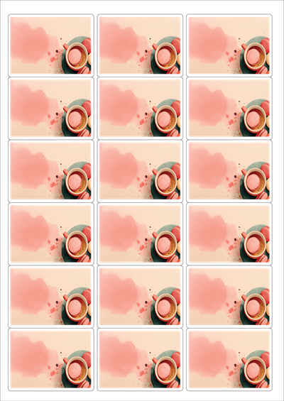 디자인된 A4 라벨지 출력용 라벨스티커, 규격코드: 236, 디자인코드: DA1444(마카롱 휴식타임), 63.4 x 46.51 (mm)