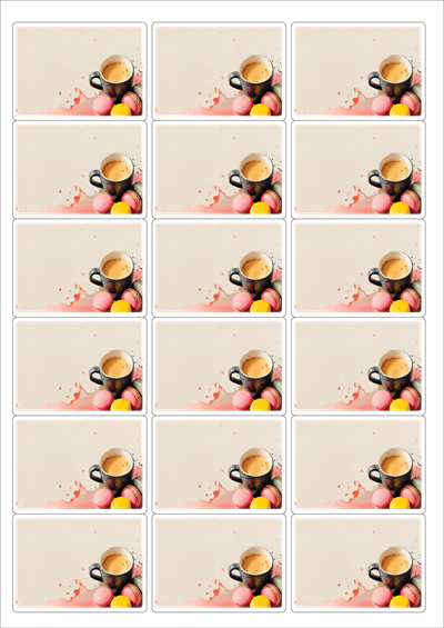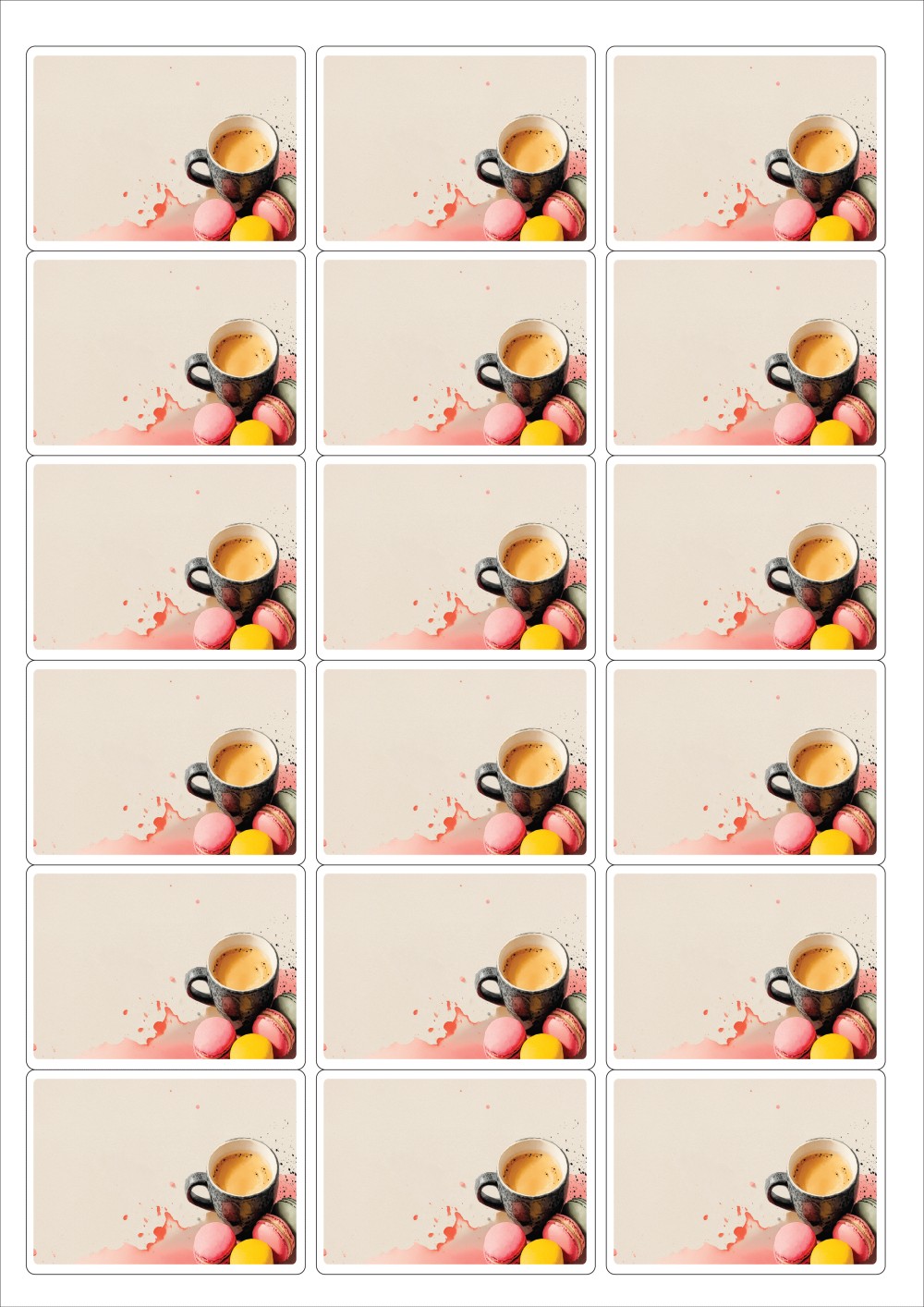 디자인된 A4 라벨지 출력용 라벨스티커, 규격코드: 236, 디자인코드: DA1445(차와 함께하는 즐거운 힐링타임), 63.4 x 46.51 (mm)