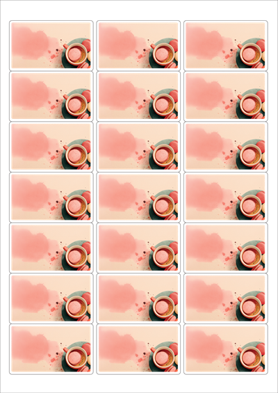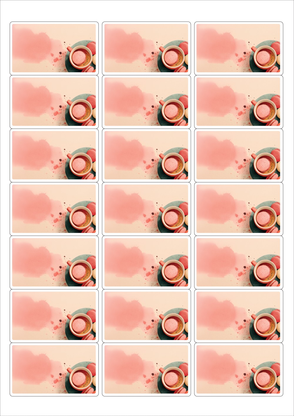 디자인된 A4 라벨지 출력용 라벨스티커, 규격코드: 237, 디자인코드: DA1444(마카롱 휴식타임), 63.4 x 38.2 (mm)