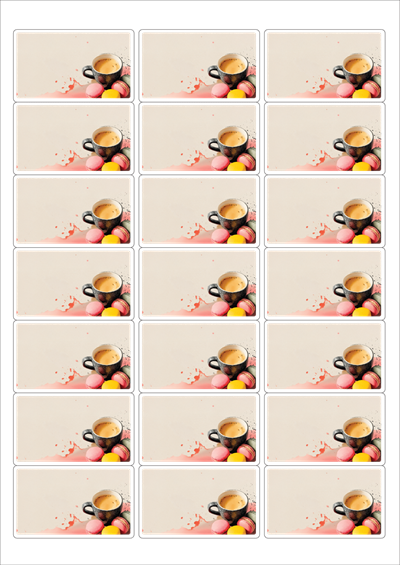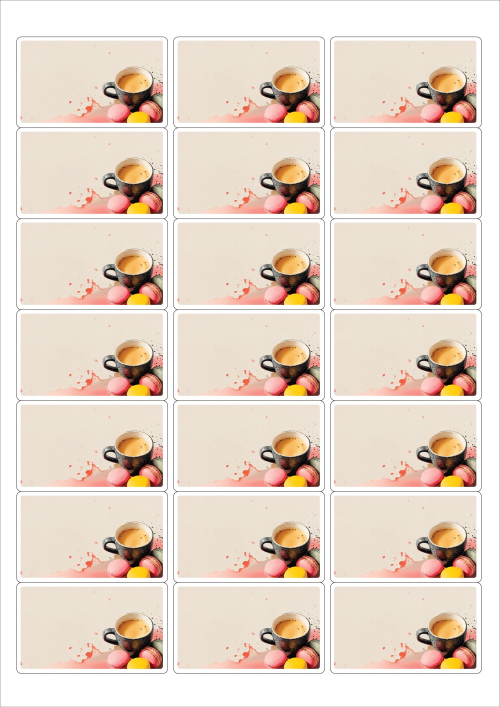 디자인된 A4 라벨지 출력용 라벨스티커, 규격코드: 237, 디자인코드: DA1445(차와 함께하는 즐거운 힐링타임), 63.4 x 38.2 (mm)