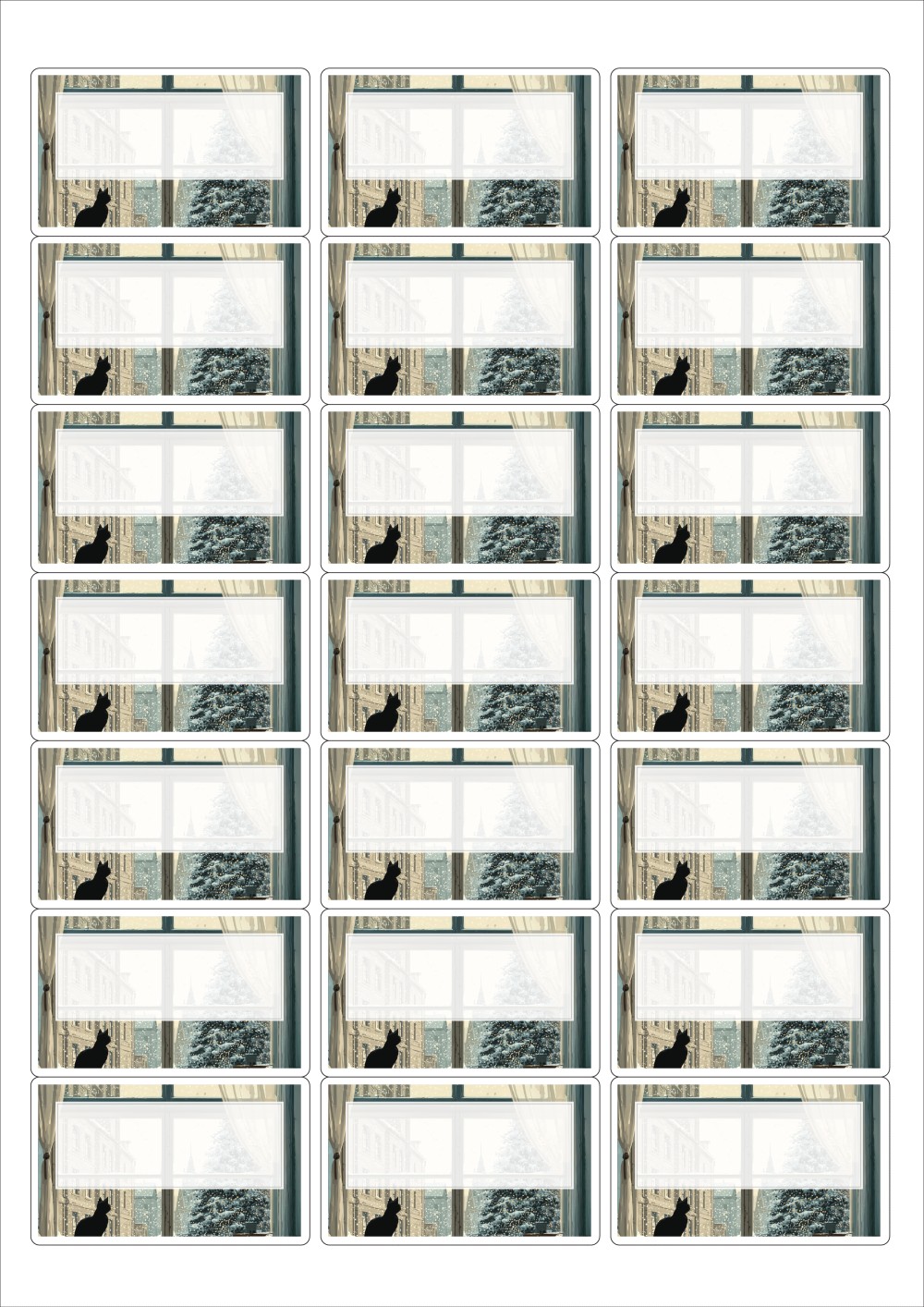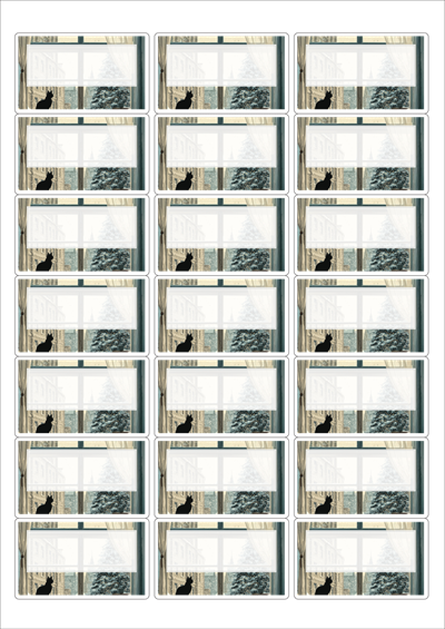 디자인된 A4 라벨지 출력용 라벨스티커, 규격코드: 237, 디자인코드: DA1494(오후엔 눈 그리고, 고양이), 63.4 x 38.2 (mm)