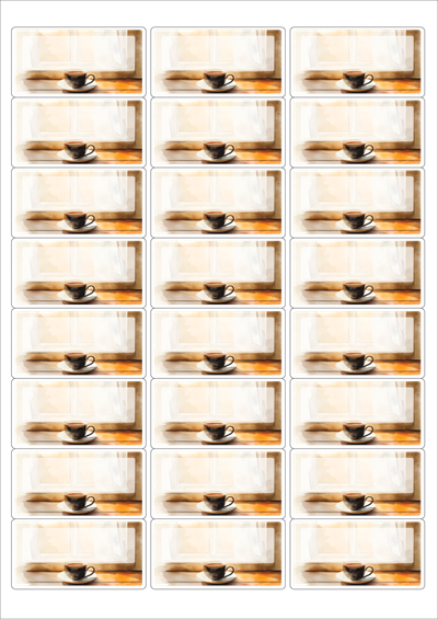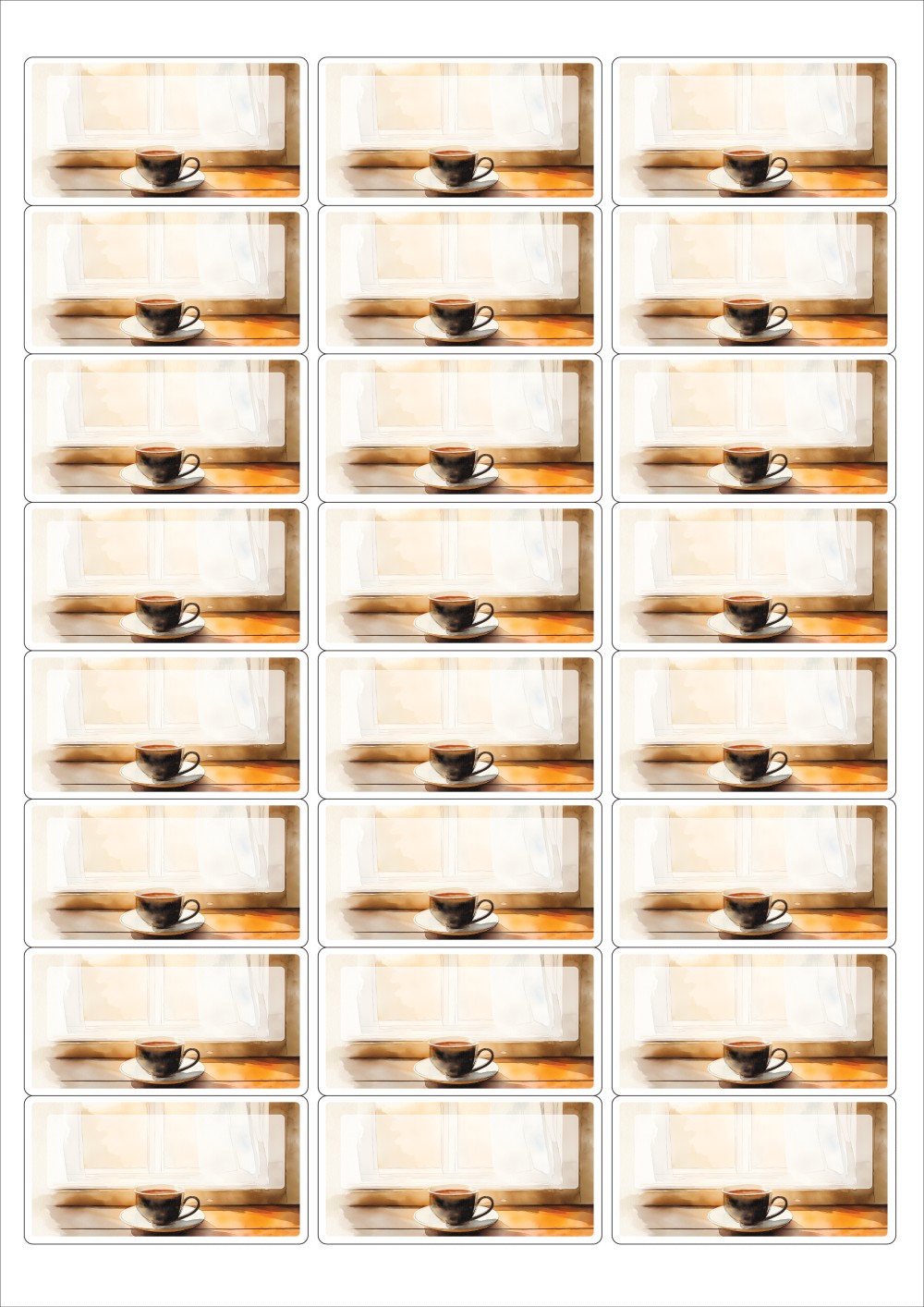 디자인된 A4 라벨지 출력용 라벨스티커, 규격코드: 238, 디자인코드: DA1424(따뜻한 차 한잔 하세요), 64.5 x 33.71 (mm)