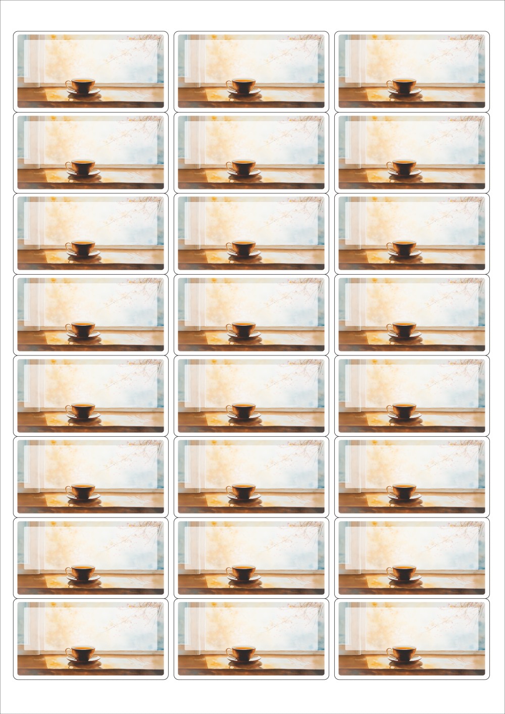 디자인된 A4 라벨지 출력용 라벨스티커, 규격코드: 238, 디자인코드: DA1425(가을날의 카페 창가에서), 64.5 x 33.71 (mm)