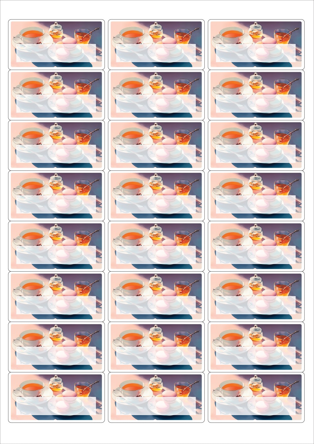 디자인된 A4 라벨지 출력용 라벨스티커, 규격코드: 238, 디자인코드: DA1430(브런치 타임), 64.5 x 33.71 (mm)