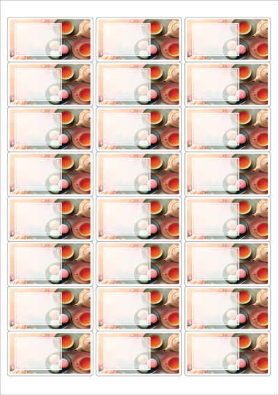 디자인된 A4 라벨지 출력용 라벨스티커, 규격코드: 238, 디자인코드: DA1431(향긋한 아침에), 64.5 x 33.71 (mm)