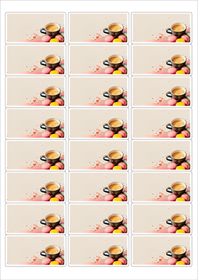 디자인된 A4 라벨지 출력용 라벨스티커, 규격코드: 238, 디자인코드: DA1445(차와 함께하는 즐거운 힐링타임), 64.5 x 33.71 (mm)