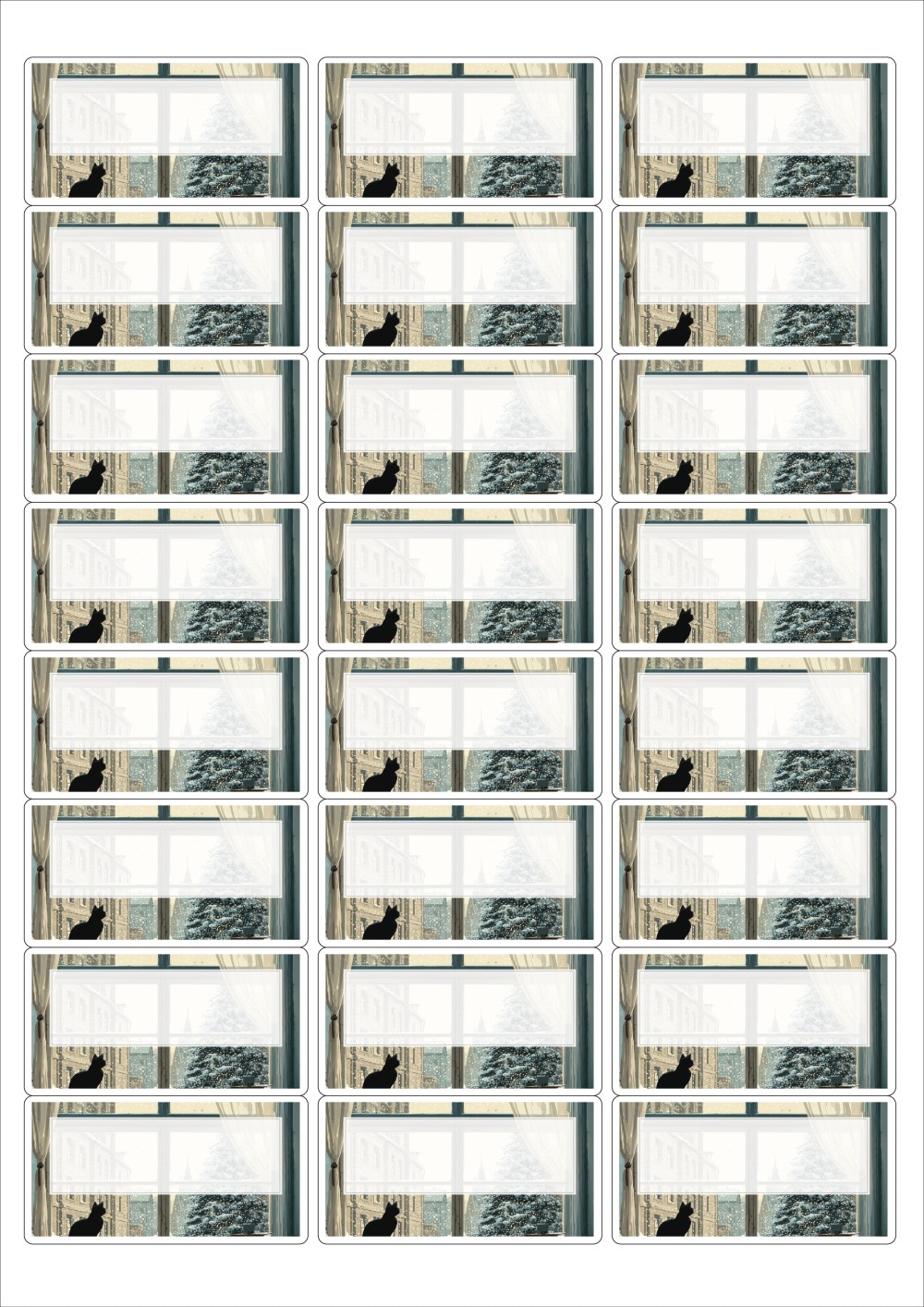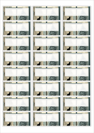 디자인된 A4 라벨지 출력용 라벨스티커, 규격코드: 238, 디자인코드: DA1494(오후엔 눈 그리고, 고양이), 64.5 x 33.71 (mm)