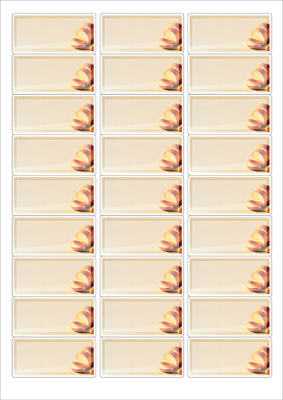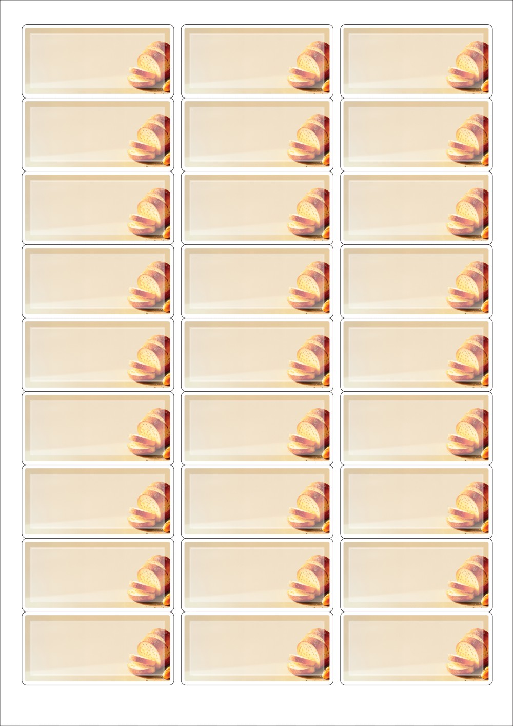디자인된 A4 라벨지 출력용 라벨스티커, 규격코드: 239, 디자인코드: DA1450(맛있는 베이커리), 62.2 x 30.03 (mm)
