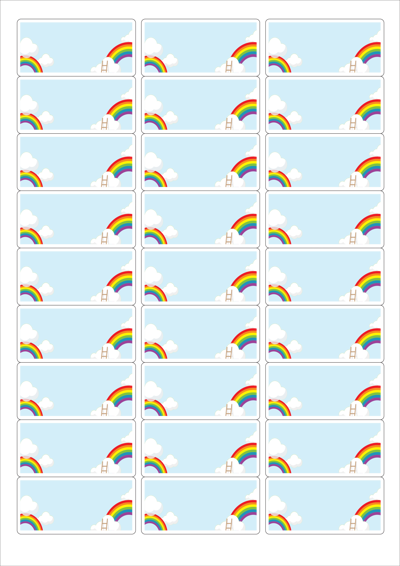디자인된 A4 라벨지 출력용 라벨스티커, 규격코드: 239, 디자인코드: DA1633(오버 더 레인보우), 62.2 x 30.03 (mm)