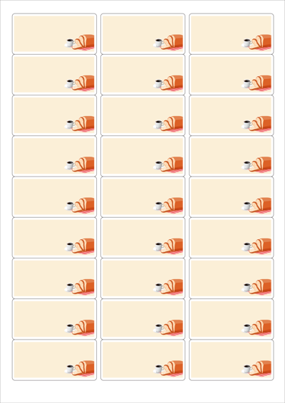 디자인된 A4 라벨지 출력용 라벨스티커, 규격코드: 239, 디자인코드: DA1650(심플한 아침식사), 62.2 x 30.03 (mm)