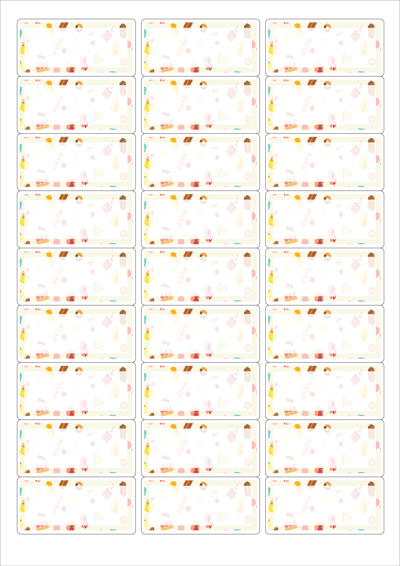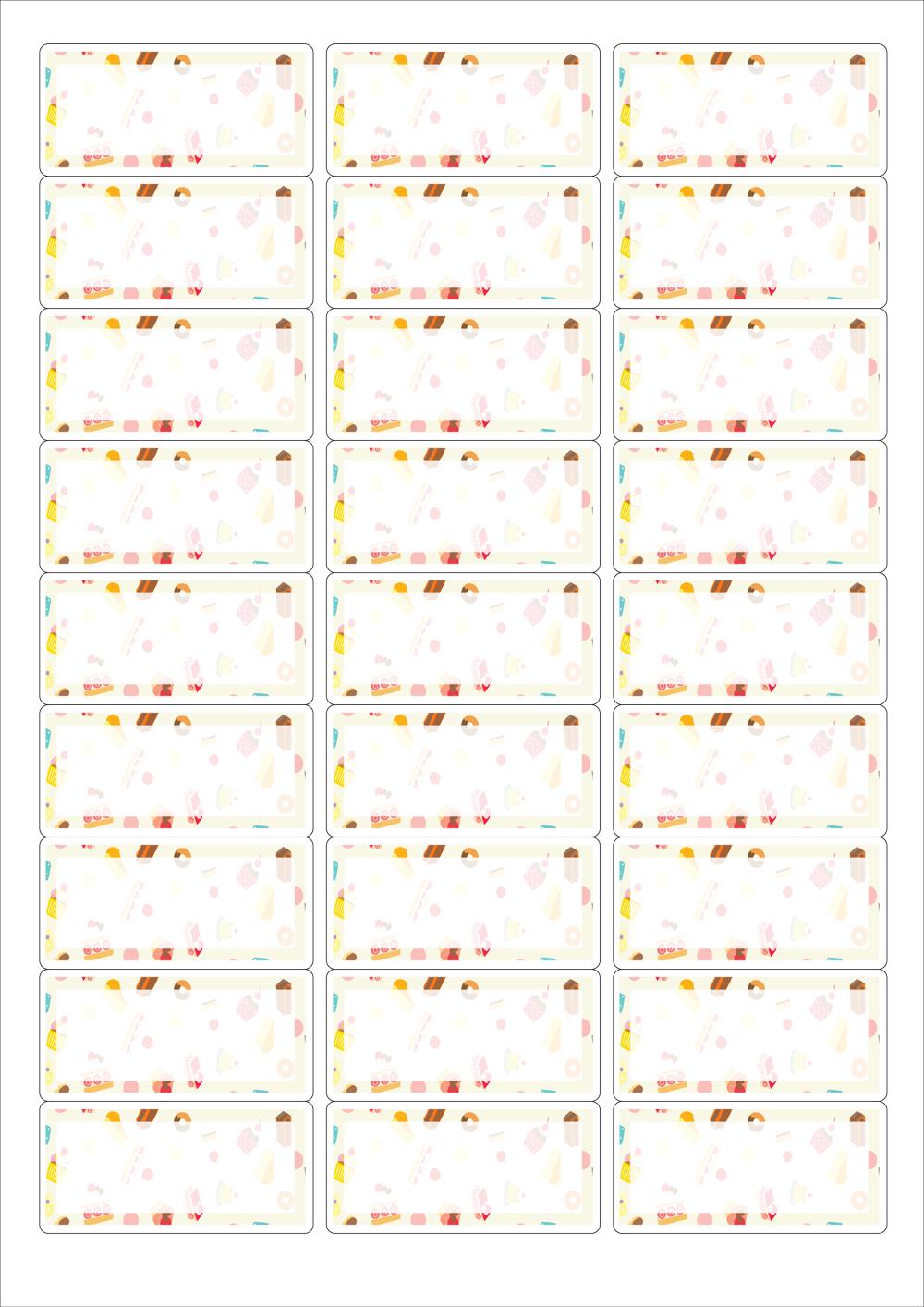 디자인된 A4 라벨지 출력용 라벨스티커, 규격코드: 239, 디자인코드: DA1655(스위트, 간식패턴), 62.2 x 30.03 (mm)