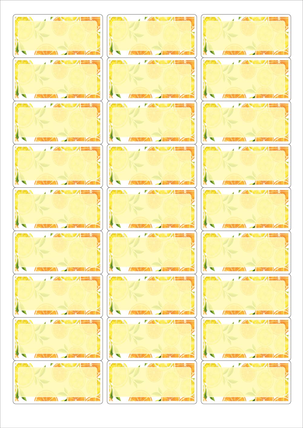 디자인된 A4 라벨지 출력용 라벨스티커, 규격코드: 239, 디자인코드: DA1697(레몬 팡팡), 62.2 x 30.03 (mm)