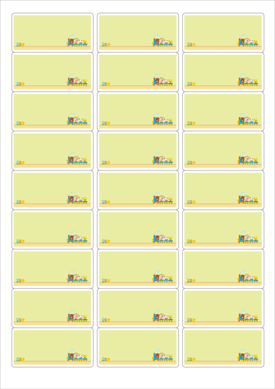 디자인된 A4 라벨지 출력용 라벨스티커, 규격코드: 239, 디자인코드: DA1802(기차놀이), 62.2 x 30.03 (mm)