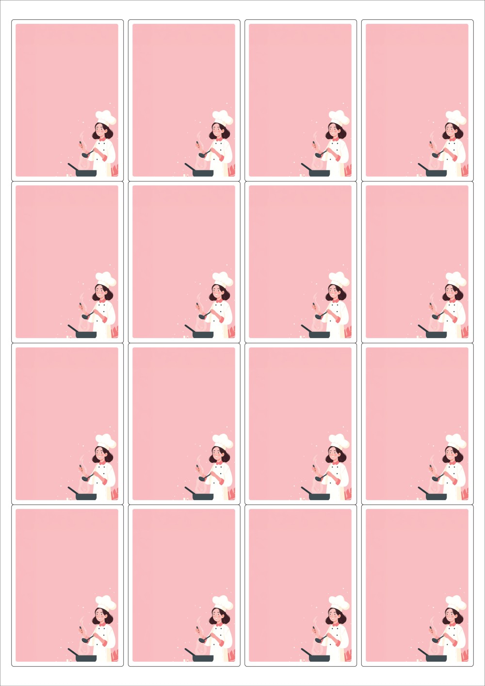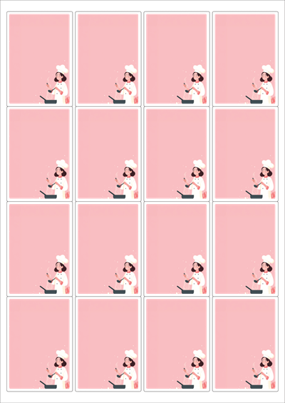 디자인된 A4 라벨지 출력용 라벨스티커, 규격코드: 244, 디자인코드: DA1434(요리교실 오픈했어요), 48.5 x 70 (mm)